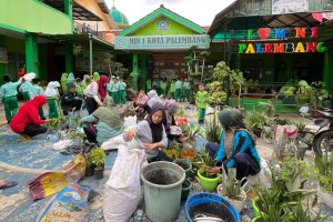 Gotong Royong Hijaukan Madrasah, MIN 1 Palembang Percantik Taman Sekolah